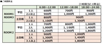 ✳︎フラメンコの歌、パルマ、ギターでのご利用で、かつ、サパトスを履かない場合は、終日全室ご利用可能です。フラメンコ以外の踊り(タップ他)は終日全室ご利用可能です。